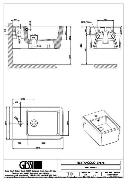 Gessi Total Look биде подвесное White European Ceramic с переливом, 1 отверстие под смеситель, в комплект входит пробка для перелива, цвет White Ceram