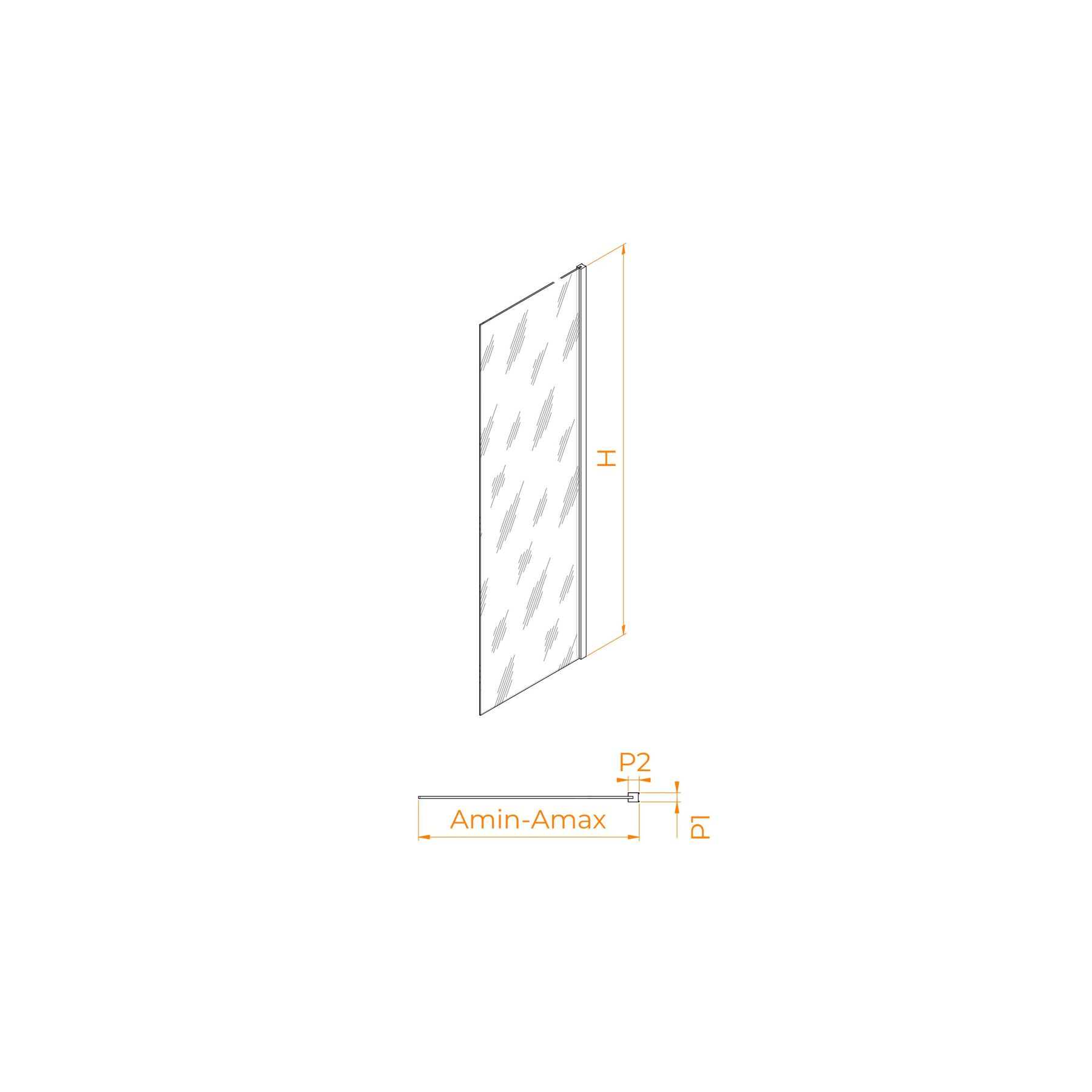 Боковая панель с пристенным профилем, оснащена высокопрочным закалённым стеклом толщиной 6 мм и усиленным профилем для соединения в конфигурацию П-образного или Г-образного угла с душевыми дверьми RGW CL-13, которые имеют цвет профиля и стекло в аналогичном исполнении
