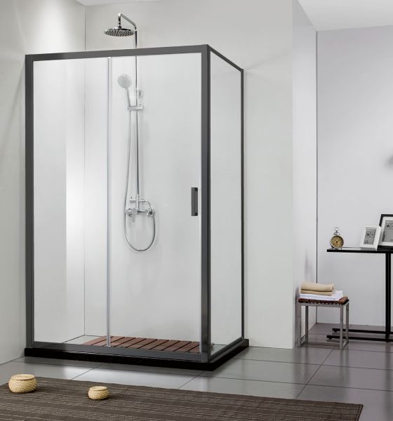 Это решение экономит место в ванной комнате. Также с помощью неподвижной стенки можно, например, отгородить стиральную машину, шкаф, раковину или унитаз.