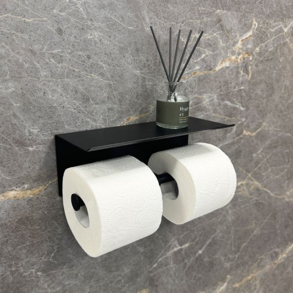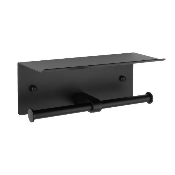 Бумагодержатель двойной с полкой для телефона Fixsen Hotel черный (FX-31011B-2)