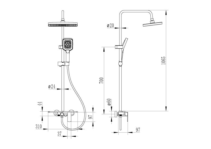 душевая система со смесителем