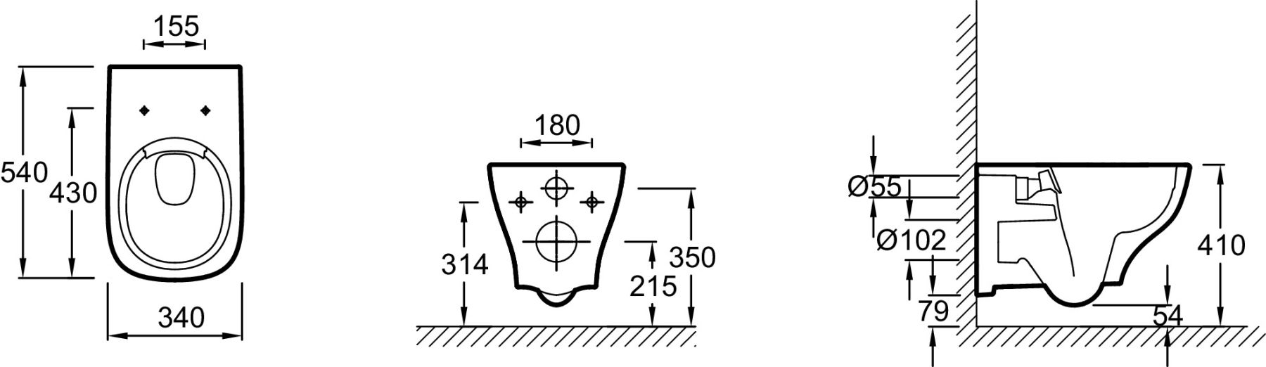 • Прилегание унитаза к стене:
