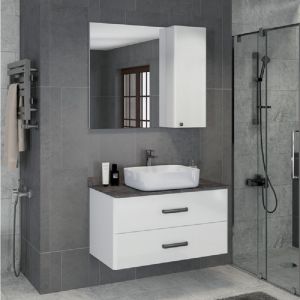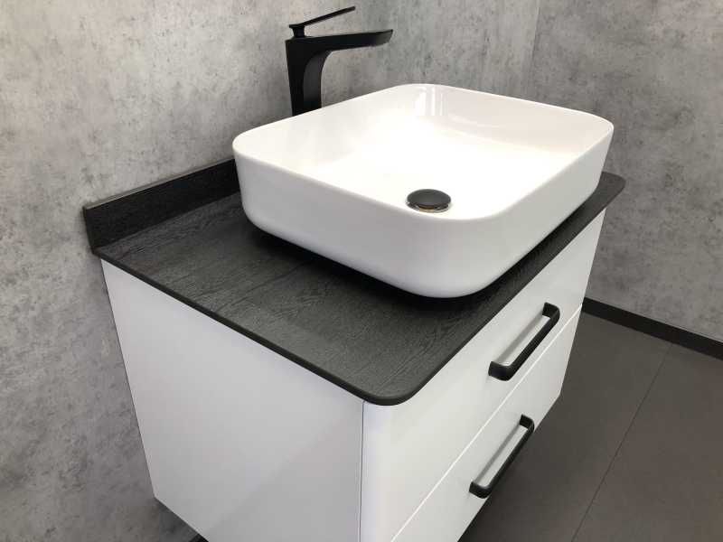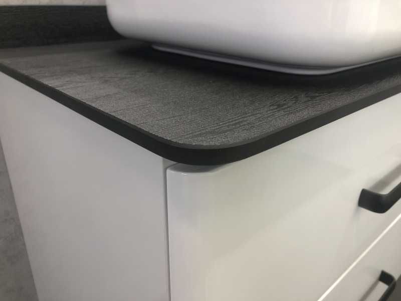Тумба Comfortу Амстердам-75 белая с черной столешницей, с раковиной T-Y9378 (00-00004668)Подвесная тумба с двумя выкатными ящиками оснащенными системой плавного закрывания. Оригинальные эргономичные ручки. Тумба укомплектована столешницей (текстура - брашированная древесина) и плинтусом из темно-серого керамогранита и накладной прямоугольной раковиной.Фасад тумбы покрыт глянцевой эмалью, что добавит приятных тактильных ощущений.Исправно прослужит на протяжении всего срока эксплуатации.Два выдвижных ящика.Тумба укомплектована санфаянсовой раковиной COMFORTY T-Y9378.Механизм плавного закрытия ящика.Цвет: белый глянец.Цвет фурнитур: черный.Габариты (ШхВхГ): 75х63х50 см.Материал: ДСП, МДФ.Материал раковины: санфарфор.Монтаж: подвесной.В комплекте :тумба;