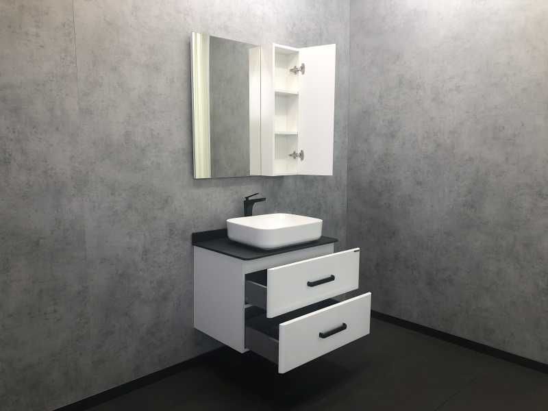 Comforty Тумба-умывальник "Амстердам-75" белая с черной столешницей, с раковиной Comforty T-Y9378