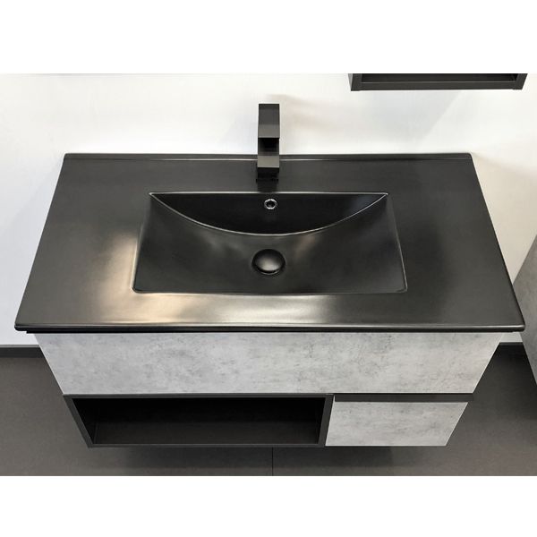 Comforty Тумба-умывальник Франкфурт 90 см 00-00006503 бетон светлый с черной раковиной