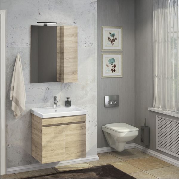 Название: Тумба-умывальник Артикул: Тромсе 60 Варианты цвета корпуса и фасада: Дуб Сонома Матери... Подробнее