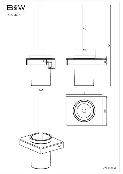 Держатель для ёршика Black and White Gravity 9607C ХромКоллекция выполнена в двух цветовых решениях CHROME и GUN Metal. Благодаря использованию закаленного стекла, каждая деталь аксессуара приобретает свое уникальное отражение. В цветовом решении CHROME используется белое стекло. Для удобства пользования, на концах держателя для туалетной бумаги использованы стопоры, которые не позволяют рулоны слетать при использовании. Коллекция выполнена из надежных материалов: латунь и закаленное стекло, именно это позволяет не беспокоиться о надежности и увеличенном сроке службы каждого изделия.
