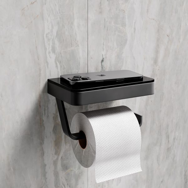 Держатель для туалетной бумаги Lemark Glass Line 9722030 с полкой чёрный матовый/чёрное стекло