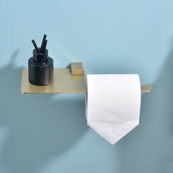 Raglo R301.03.03 Бумагодержатель с полочкой под телефон. Форма квадратная, цвет - сатиновое золото, полуматовое покрытие. Комплект крепежа есть.