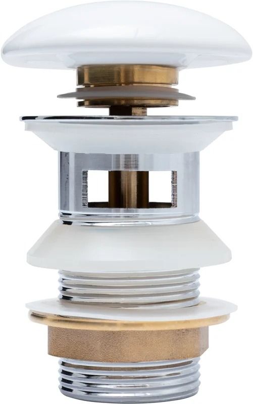 Донный клапан латунь с переливом крышка керамика белый (333927)