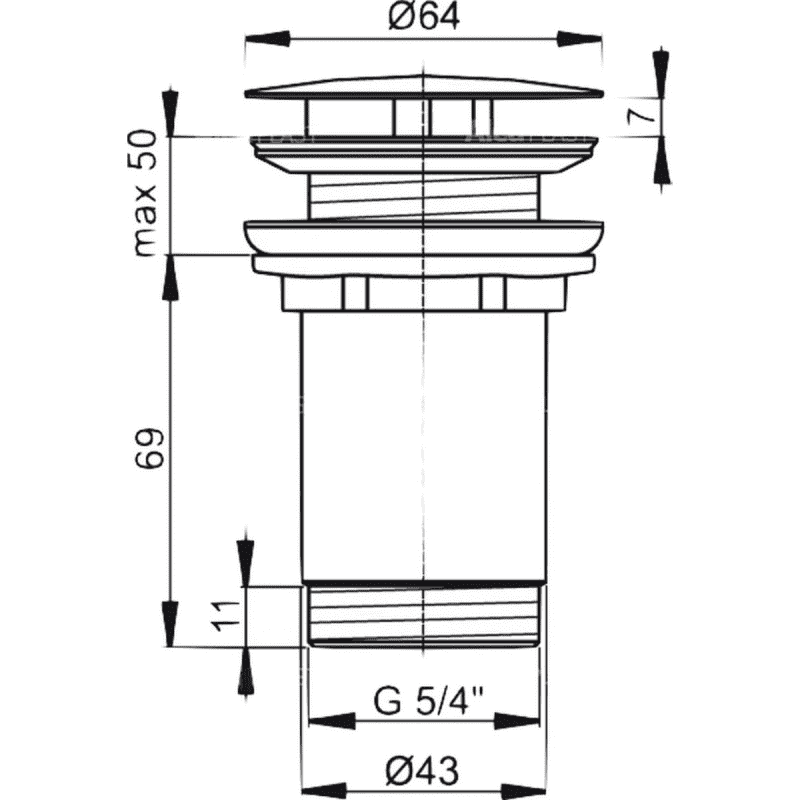 Донный клапан для раковины AlcaPlast клик-клак 5/4" цельнометаллический с большой пробкой A396