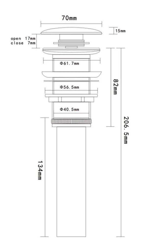 закрывающийся сливной вентильдля умывальников без отверстия для переливапропускная способность >32 л/минПодключение к сифону 32 ммДиаметра слива 40 ммМатериал корпуса - Латунь