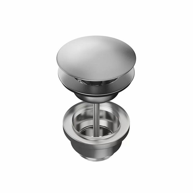Донный клапан для раковины выполнен из нержавеющей стали AISI 316: этот металл обладает особой устойчивостью к механическим воздействиям, гипоаллергенен, не подвержен коррозии. Нажатие на клапан закрывает его, повторное нажатие открывает.