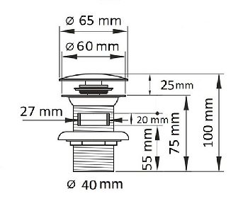 Универсальный донный клапан (для раковин и биде) с отверстием для подключения перелива Laguraty Click-Clack X0001