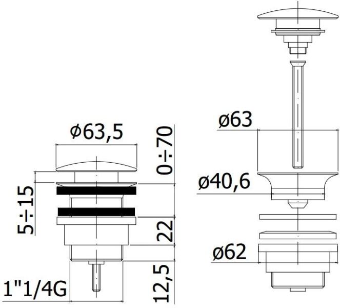 Универсальный донный клапан клик-клак 1 1/4" из латуни цвет хромДонный клапан Paffoni ZSCA050CR.Комплектация: