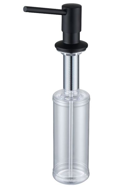 Дозатор встраиваемый для жидкого моющего средства Raglo R720.01.06 - отличный аксессуар для вашей кухни. Устанавливается в отверстие в столешнице Ф25 - 35 мм и фиксируется при помощи прижимной гайки на резьбе, рядом со смесителем для кухни. А со смесителями R80.62.06, R81.64.06, S70.61.06 составит прекрасный дуэт. Потому что выполнены они в одном цвете - черный. Толщина столешницы возможна от 1 до 5 см. Головка дозатора из латуни, колба объемом 350 мл из прочного пластика. Нажатие мягкое, носик дозатора поворачивается на 360 градусов. Дозатор легко монтируется на столешницу и весьма удобно и просто происходит пополнение моющего средства. Дозатор превосходно организует пространство у мойки и несомненно украсит ее.
