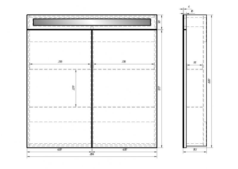 Французское зеркальное полотно. Универсальный зеркальный шкаф с подсветкой. Боковины - глянцевое МДФ. Крепление к стене - гребенка. Подходит к любой коллекции Dreja.eco шириной 80 см.
