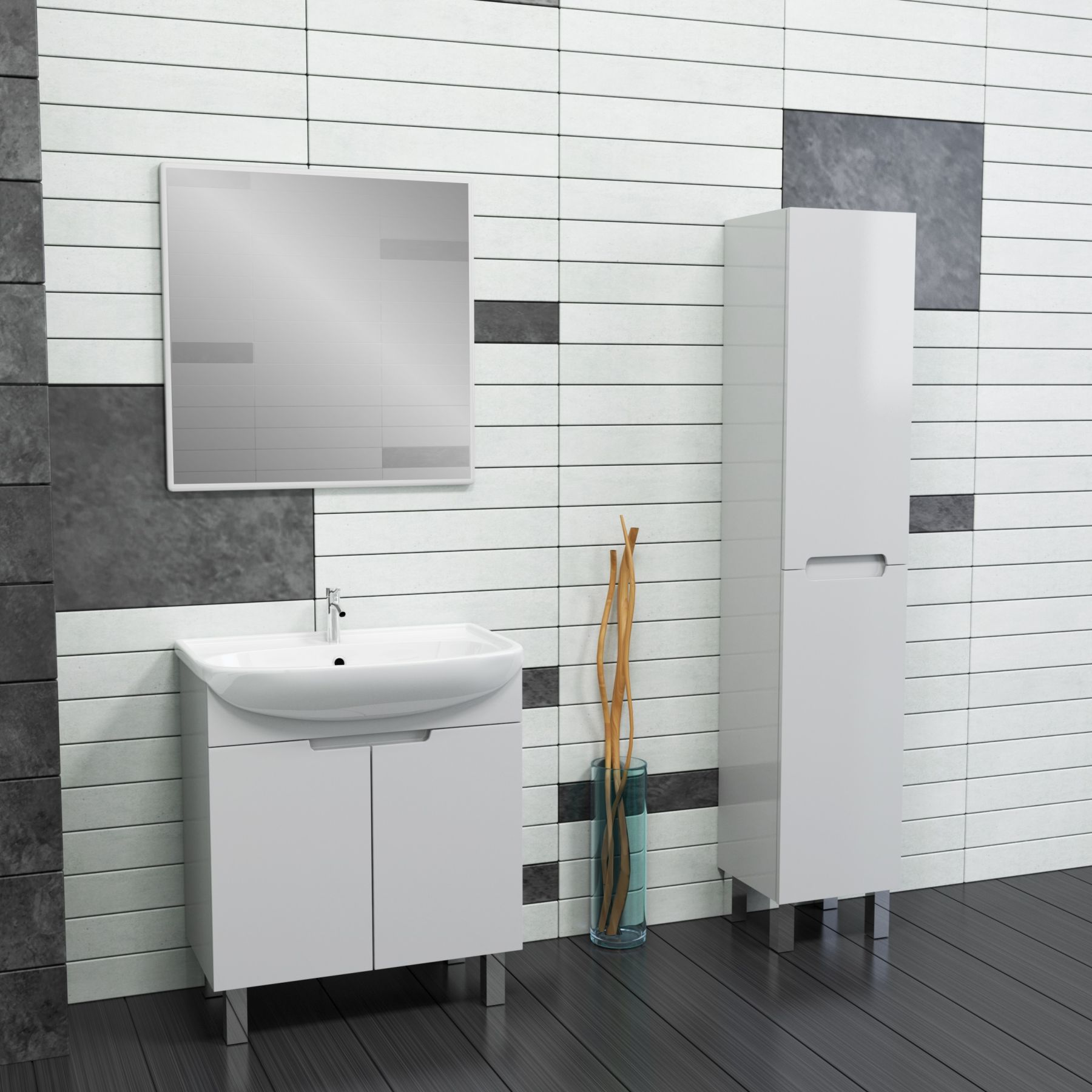 Строгий минимализм, лаконичный дизайн, глянцевая поверхность фасада, идеальное качество покраски. В комплект можно подобрать зеркальные шкафы, пенал, полупенал.