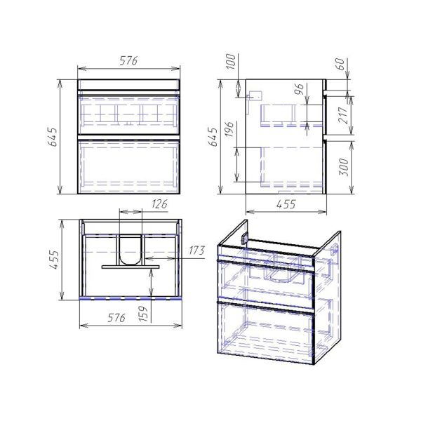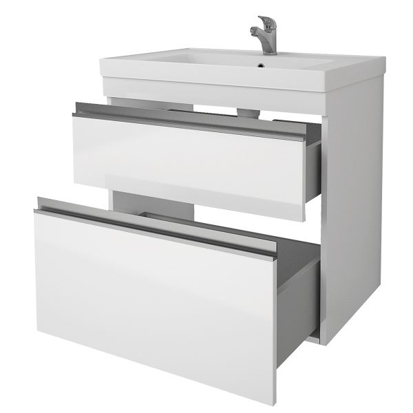 Коллекция Grace Plus под новый керамический умывальник Grace 60/70 см. Модель имеет два ящика – верхний оснащен встроенным органайзером.