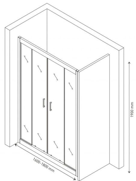 Телескопические направляющие двери позволяют установить дверь в нишу от 120 до 180 см под ваш индивидуальный размер в данном диапазоне.Материал комплектующих: