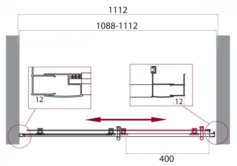 Регулировка ширины: предусмотрена за счет боковых профилей