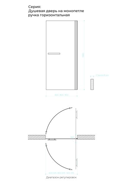 Стеклянная душевая дверь на монопетле является стильным и функциональным аксессуаром для ванной комнаты. Монопетля обеспечивает плавное и бесшумное открывание и закрывание двери. Закаленное стекло, из которого изготовлена дверь, обладает высокой прочностью и устойчивостью к механическим повреждениям и воздействию влаги. Закаленное стекло, цвет бесцветный, толщина 8 мм 1950х845 мм - 1 шт.