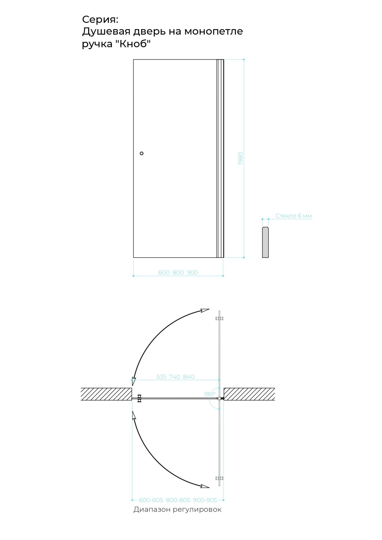 Душевая дверь на монопетле by Deonria D-198-80-6-T-HM 80см хром матовый/прозрачный