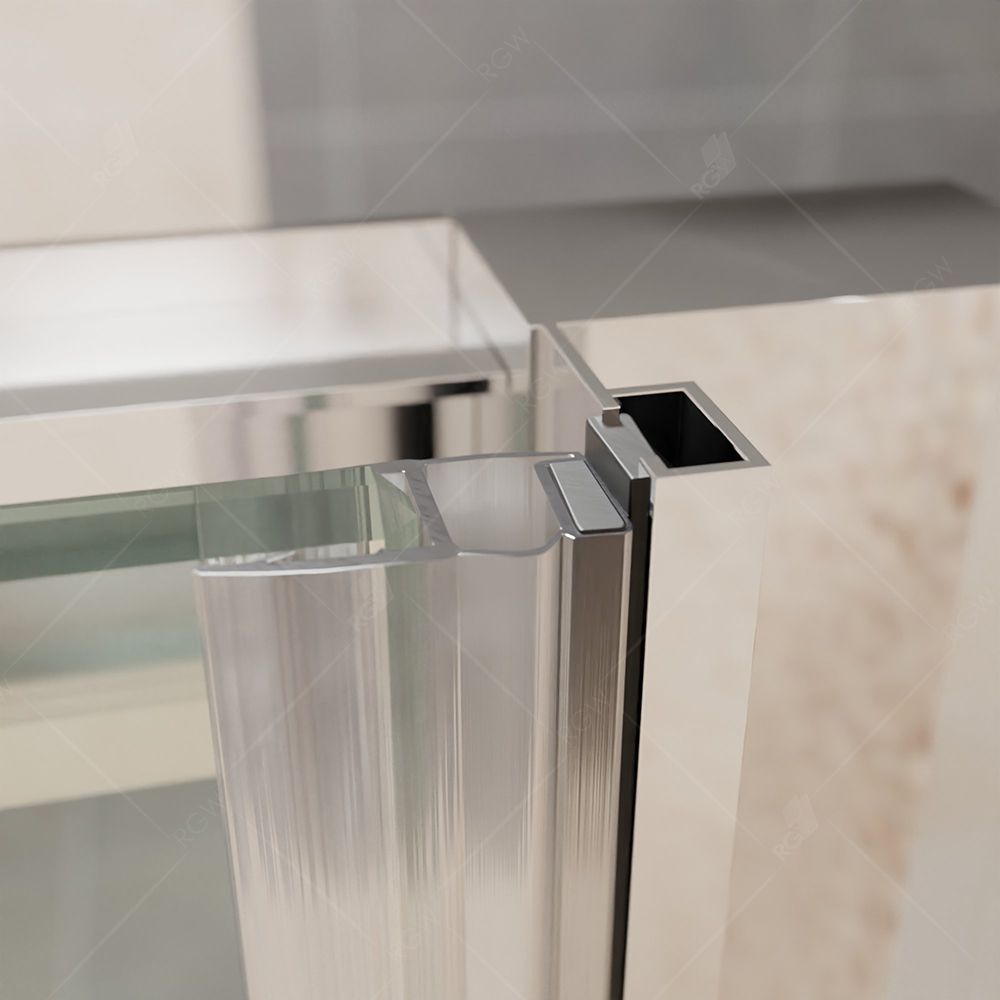 Душевая дверь раздвижная RGW PA-14. Ручка скоба из цинкового сплава, двойные верхние ролики. двойные отстегивающиеся нижние ролики, крышки верхнего профиля. Трап или поддон приобретается отдельно.Душевая дверь RGW Passage PA-14 100x195 профиль хром незаменимый элемент любой ванной комнаты от миниатюрного санузла в многоквартирной высотке, до огромного помещения в загородном доме. Установка душевой двери в нишу поможет просто и быстро обустроить функциональную зону в санузле, что значительно снизит стоимость работ.Душевая дверь RGW Passage прямоугольной формой размером 100 см высотой 195 см создаст значительное пространство внутри, для вашего комфорта. Цвет профиля RGW Passage - хром, это бесподобный вариант для современного интерьера. Конструкция дверей 41081410-51 раздвижная, не требует дополнительного пространства для открывания и позволяет оптимизировать пространство ванной комнаты. Стекло у душевой двери RGW 41081410-51 представлено в рифленом исполнении, толщиной 6 мм, отлично будет гармонировать с любым дизайном интерьера ванной. Универсальность ориентации RGW Passage позволяет не задумываться о, том в какой именно угол нужно устанавливать, и даже при изменении положения других элементов сантехники, можно без проблем изменить ориентацию. RGW Passage 41081410-51 спроектирован дизайнерам с четким соблюдением всех существенных элементов современного стиля. Наличие покрытия анти-капля надежно защитит стекло от налета, подтёков и других загрязнений, а так же сохранит чистоту стекла и эстетичный внешний вид.Все душевые ограждения RGW, производятся с жестким соблюдением современных стандартов качества и применение материалов безопасных для здоровья, благодаря тому, что родна производства Германия. Душевая дверь RGW Passage PA-14 100x195 профиль хром гармонично вольется в ваш интерьер и подарит ему дополнительные современные элементы.