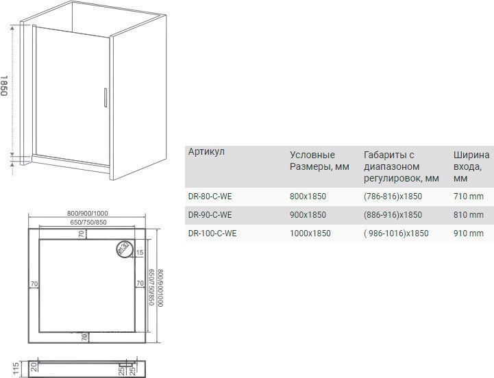 Выполнена из 5-ти миллиметрового закаленного, безопасного стекла с дверьми открывающимися наружу