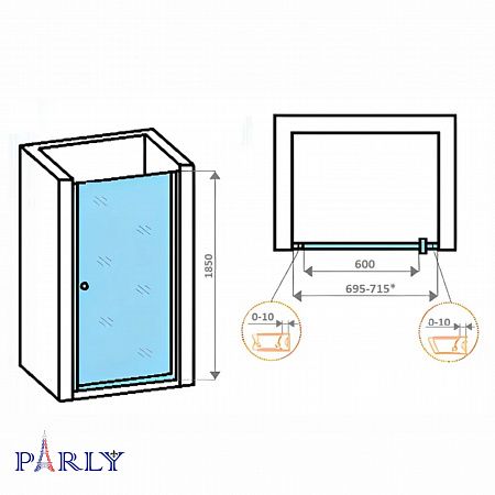 Душевая дверь в нишу PARLY DE70 (70x185)