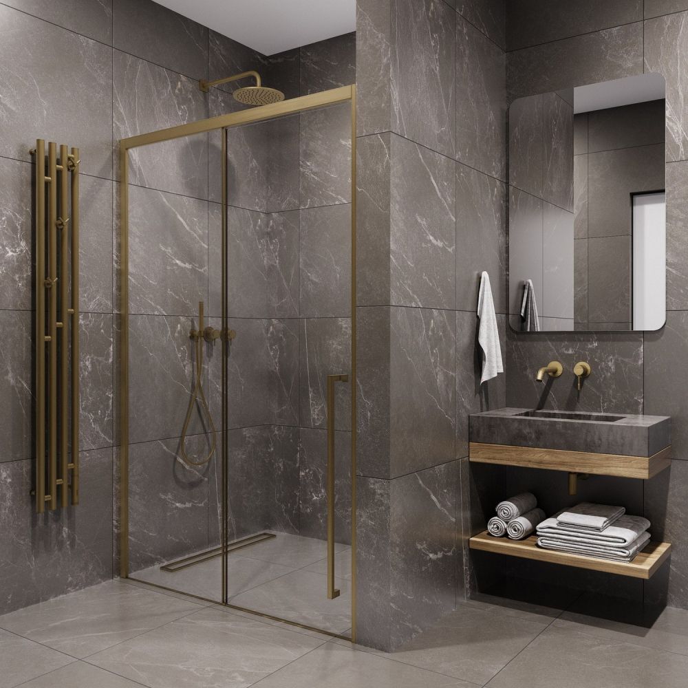 Душевая дверь в нишу Timo T54R 140 см правая золото матовое купить