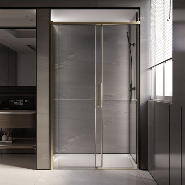 Душевая дверь Veconi Premium Trento PTD-40G, 1200х2000, брашированное золото, стекло прозрачное