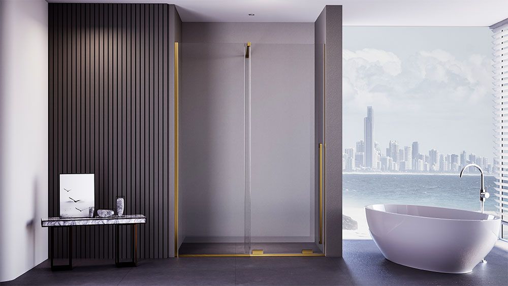 Душевая дверь Veconi Premium Trento PTDW-50G, 1000x2000, брашированное золото, стекло прозрачное купить