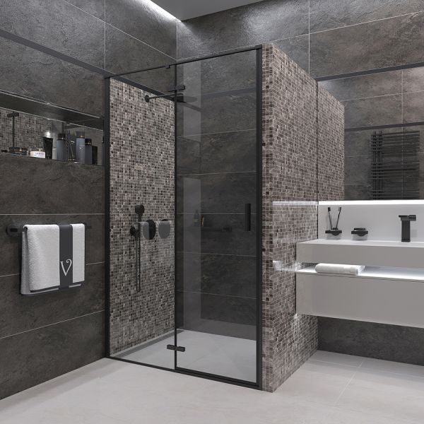 Душевая дверь Veconi Vianno VN-73B, 800x1950, Черный, стекло прозрачное