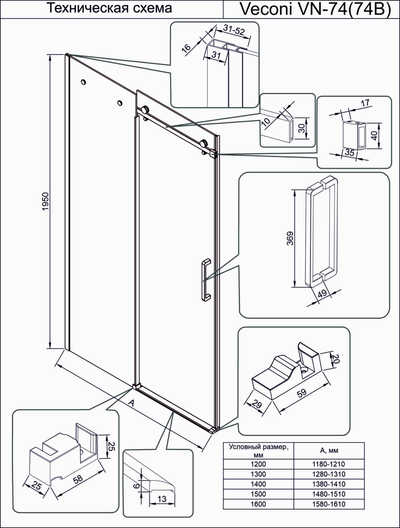 Душевая дверь Veconi Vianno VN-74, 1500x1950, хром, стекло прозрачное купить