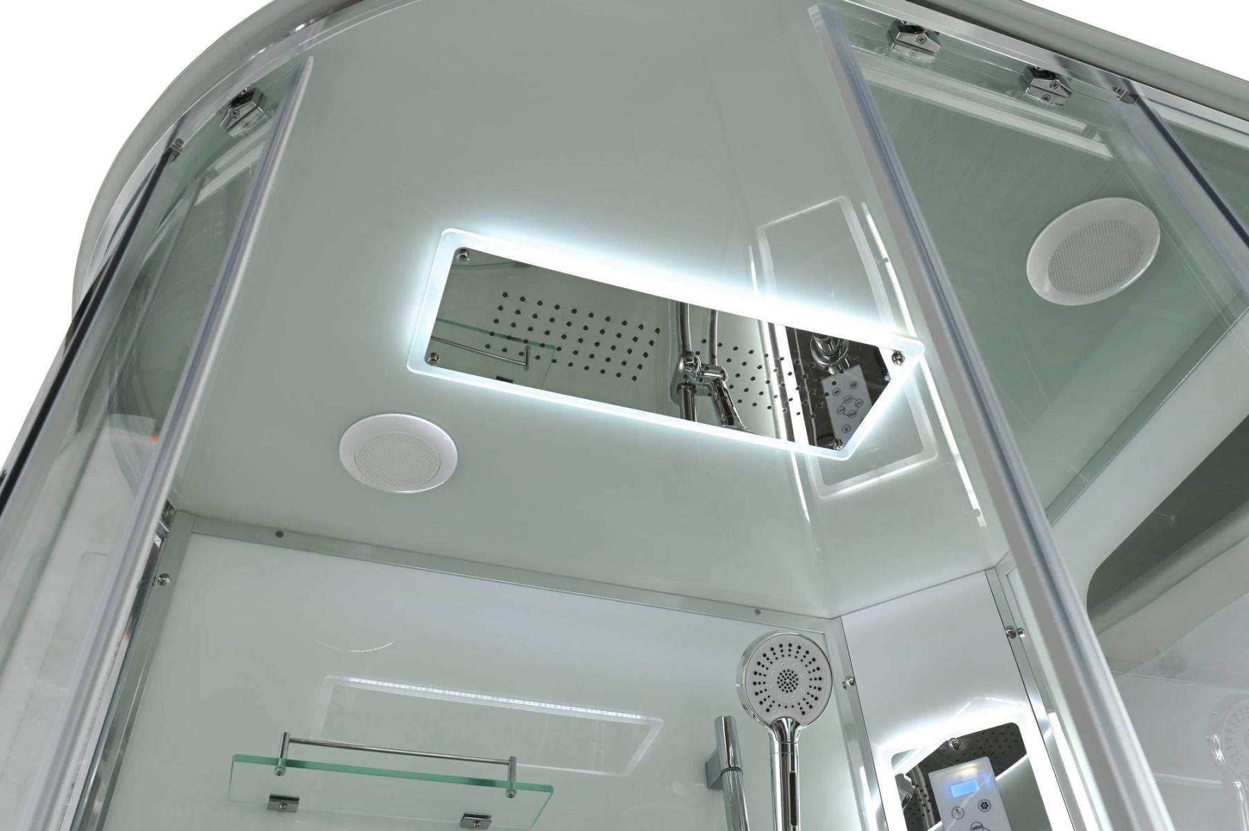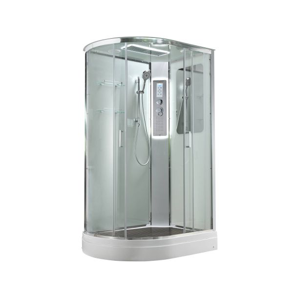 Стильная душевая кабина AvaCan сочетает в себе высокую функциональность, практичность и надежность. При изготовлении применяется безопасное закаленное стекло, надежно фиксируемое алюминиевым профилем.Профиль сделан из алюминия повышенной прочности. Сборка без силикона (увеличивает срок службы, защищает от протечек), внутренняя сборка (облегчает установку и ревизию; позволяет установить в ограниченном пространстве и обойтись без демонтажа других сантехнических приборов), смеситель резьбовой (без хомутов). Двойные металлические ролики дверей (распределение нагрузки на два ролика, увеличивают срок службы). Душевая штанга(позволяет регулировать по высоте ручную лейку), ручная арома-лейка с витамином С (картридж в комплекте,есть возможность замены или удаления картриджа), полочки(из стекла, с ограничителем), сифон с гидрозатвором, сенсорный пульт управления с функциями: блютуз, LED подсветка, радио, вытяжка, гидромассаж спины, тропический (верхний) душ.