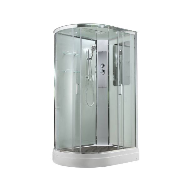 Стильная душевая кабина AvaCan сочетает в себе высокую функциональность, практичность и надежность. При изготовлении применяется безопасное закаленное стекло, надежно фиксируемое алюминиевым профилем. Профиль сделан из алюминия повышенной прочности. Сборка без силикона (увеличивает срок службы, защищает от протечек), внутренняя сборка (облегчает установку и ревизию; позволяет установить в ограниченном пространстве и обойтись без демонтажа других сантехнических приборов), смеситель резьбовой (без хомутов). Съемный экран поддона (позволяет осуществлять подключение и ревизию сифона).Двойные металлические ролики дверей (распределение нагрузки на два ролика, увеличивают срок службы). Душевая штанга(позволяет регулировать по высоте ручную лейку), ручная арома-лейка с витамином С (картридж в комплекте,есть возможность замены или удаления картриджа), полочки(из стекла, с ограничителем), сифон с гидрозатвором.