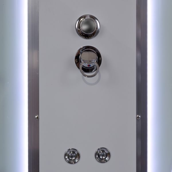 Стильная душевая кабина AvaCan EM4516 LED с гидромассажем сочетает в себе высокую функциональность, практичность и надежность. Для изготовления применяют безопасное закаленное стекло толщиной 5 мм, надежно фиксируемое алюминиевым профилем. Цвет профиля хром. В комплекте зеркало, донный клапан (клик-клак), душевой гарнитур, полочки, гидромассажные форсунки, тропический (верхний) душ.