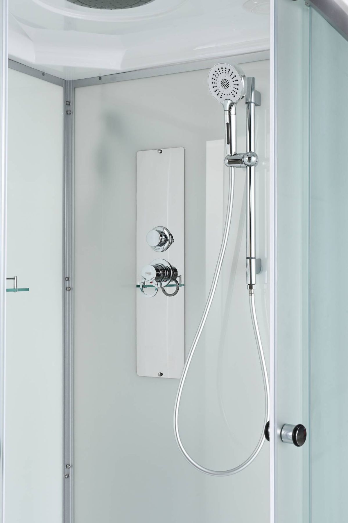 Стильная душевая кабина AvaCan D 2080 сочетает в себе высокую функциональность, практичность и надежность. При изготовлении применяется безопасное закаленное стекло толщиной 4 мм (матовое), надежно фиксируемое алюминиевым профилем. Сборка без силикона (увеличивает срок службы), внутренняя сборка (облегчает установку и ревизию, позволяет установить душевую кабину в ограниченном пространстве),смеситель резьбовой (без хомутов), съемный экран поддона (позволяет осуществлять ревизию сифона), цвет профиля матовый хром. Двойные металлические ролики дверей (увеличивают срок службы).В комплекте : душевая штанга, полочка, тропический (верхний) душ, арома-лейка с витамином С (картридж съемный).