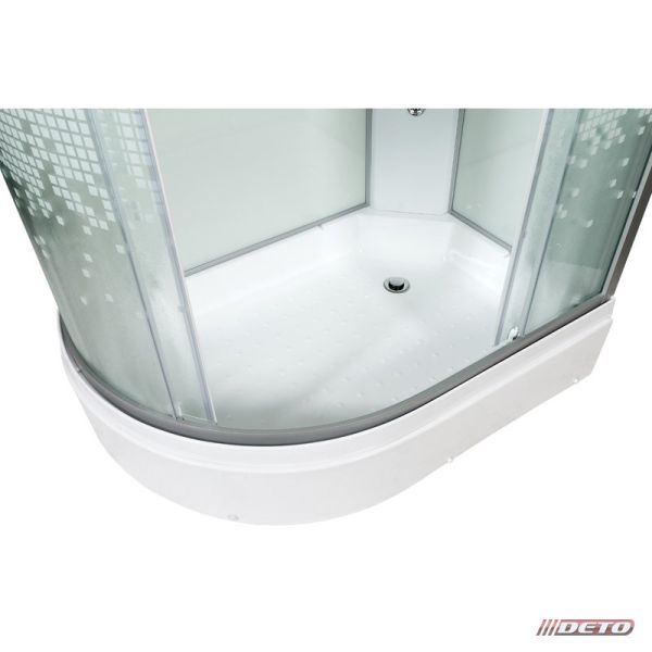 Душевая кабина Deto L720 R N прослужит Вам долгие годы, даря удовольствие от использования. Данная модель оснащена ручным душем с удобным 150-сантиметровым шлангом и лейкой, которую можно закрепить на специальном держателе, если Вы хотите освободить руки. Имеется также верхний душ, лейка которого вмонтирована в крышу кабины. Также в крыше сделаны отверстия для вентиляции, прикрытые белыми дефлекторами.Душевое ограждение изготовлено из закалённого стеклянного полотна толщиной 4 мм. При обычном бытовом использовании оно безопасно, так как его сложно разбить. Но и даже в таком случае оно образует осколки без острых граней.