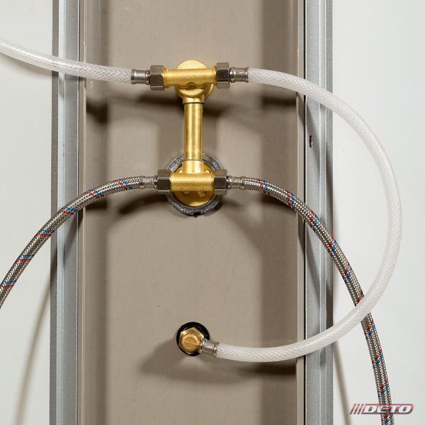 -латунный смеситель с керамическими картриджами и резьбовыми соединениями;