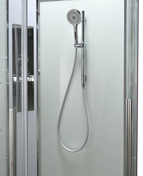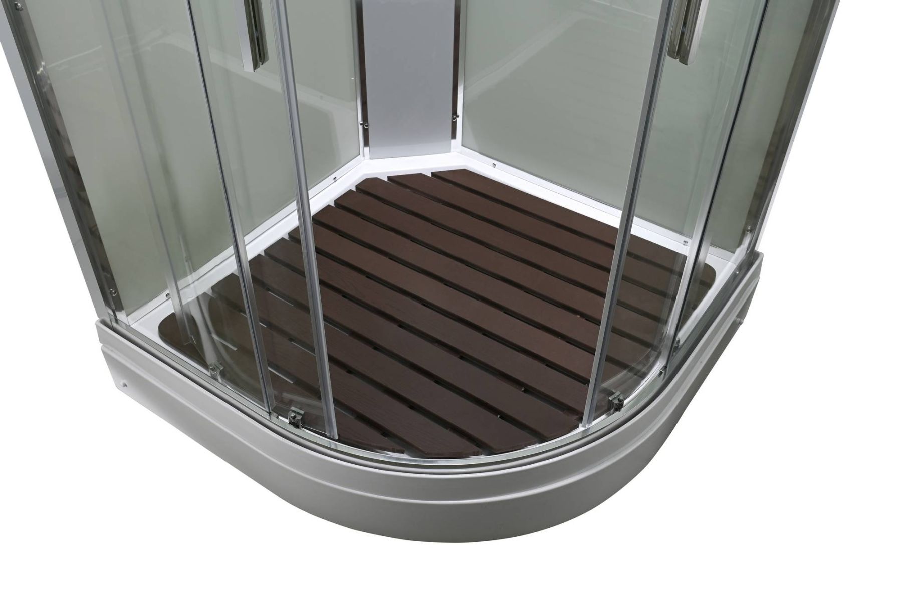 Стильная душевая кабина AvaCan EM2011NT сочетает в себе высокую функциональность, практичность и надежность. При изготовлении применяется безопасное закаленное стекло толщиной 5 мм (прозрачное), надежно фиксируемое алюминиевым профилем. Сборка без силикона (увеличивает срок службы), внутренняя сборка(облегчает установку и ревизию; позволяет установить в ограниченном пространстве), смеситель резьбовой (без хомутов). Съемный экран поддона (позволяет осуществлять ревизию сифона). Цвет профиля  хром. Двойные металлические ролики дверей (увеличивают срок службы).В комплекте : душевая штанга, две полочки , арома-лейка с витамином С (картридж съемный),полимерная вставка в поддон(имитация дерева),сифон, ручки дверей из нержавейки , двойные ролики .