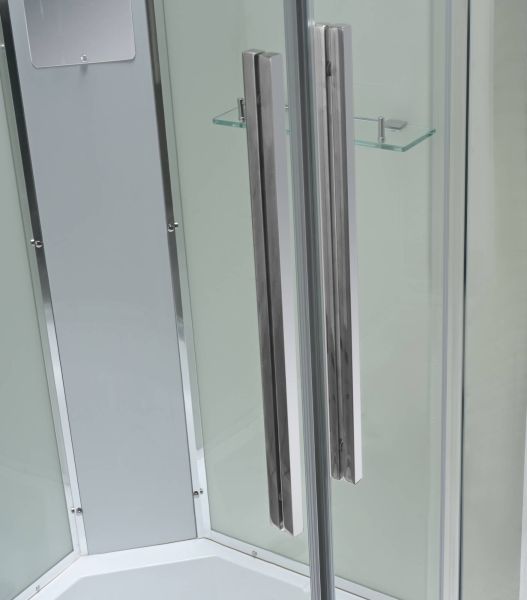 Стильная душевая кабина AvaCan сочетает в себе высокую функциональность, практичность и надежность. При изготовлении применяется безопасное закаленное стекло, надежно фиксируемое алюминиевым профилем. Профиль сделан из алюминия повышенной прочности. Сборка без силикона (увеличивает срок службы, защищает от протечек), внутренняя сборка (облегчает установку и ревизию; позволяет установить в ограниченном пространстве и обойтись без демонтажа других сантехнических приборов), смеситель резьбовой (без хомутов). Съемный экран поддона (позволяет осуществлять подключение и ревизию сифона).Двойные металлические ролики дверей (распределение нагрузки на два ролика, увеличивают срок службы). Душевая штанга(позволяет регулировать по высоте ручную лейку), ручная арома-лейка с витамином С (картридж в комплекте,есть возможность замены или удаления картриджа), полочки(из стекла, с ограничителем), сифон с гидрозатвором.