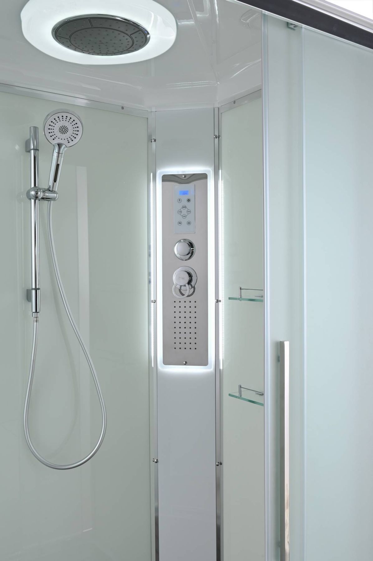Стильная душевая кабина AvaCan сочетает в себе высокую функциональность, практичность и надежность. При изготовлении применяется безопасное закаленное стекло, надежно фиксируемое алюминиевым профилем.Профиль сделан из алюминия повышенной прочности. Сборка без силикона (увеличивает срок службы, защищает от протечек), внутренняя сборка (облегчает установку и ревизию; позволяет установить в ограниченном пространстве и обойтись без демонтажа других сантехнических приборов), смеситель резьбовой (без хомутов). Съемный экран поддона (позволяет осуществлять подключение и ревизию сифона).Двойные металлические ролики дверей (распределение нагрузки на два ролика, увеличивают срок службы). Душевая штанга(позволяет регулировать по высоте ручную лейку), ручная арома-лейка с витамином С (картридж в комплекте,есть возможность замены или удаления картриджа), полочки(из стекла, с ограничителем), сифон с гидрозатвором, сенсорный пульт управления с функциями: блютуз, LED подсветка, радио, вытяжка, гидромассаж спины, тропический (верхний) душ.