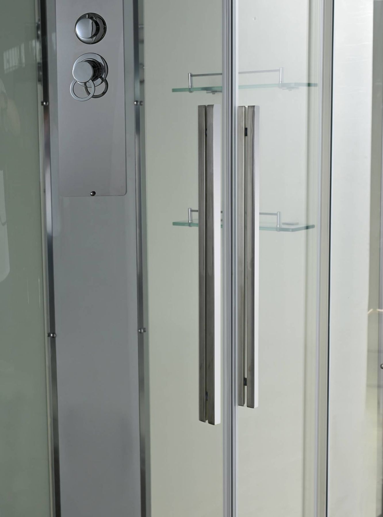 Стильная душевая кабина AvaCan сочетает в себе высокую функциональность, практичность и надежность. При изготовлении применяется безопасное закаленное стекло, надежно фиксируемое алюминиевым профилем. Профиль сделан из алюминия повышенной прочности. Сборка без силикона (увеличивает срок службы, защищает от протечек), внутренняя сборка (облегчает установку и ревизию; позволяет установить в ограниченном пространстве и обойтись без демонтажа других сантехнических приборов), смеситель резьбовой (без хомутов). Съемный экран поддона (позволяет осуществлять подключение и ревизию сифона).Двойные металлические ролики дверей (распределение нагрузки на два ролика, увеличивают срок службы). Душевая штанга(позволяет регулировать по высоте ручную лейку), ручная арома-лейка с витамином С (картридж в комплекте,есть возможность замены или удаления картриджа), полочки(из стекла, с ограничителем), сифон с гидрозатвором.