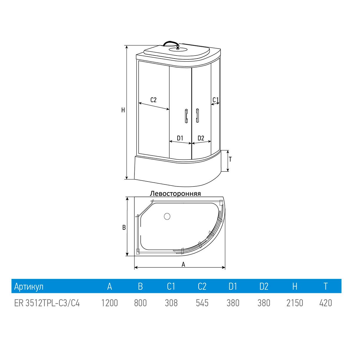 Душевая кабина Erlit Comfort ER3512TPL-C4-RUS (1200x800x2150)