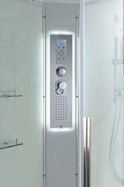 Стильная душевая кабина AvaCan сочетает в себе высокую функциональность, практичность и надежность. При изготовлении применяется безопасное закаленное стекло, надежно фиксируемое алюминиевым профилем.Профиль сделан из алюминия повышенной прочности. Сборка без силикона (увеличивает срок службы, защищает от протечек), внутренняя сборка (облегчает установку и ревизию; позволяет установить в ограниченном пространстве и обойтись без демонтажа других сантехнических приборов), смеситель резьбовой (без хомутов). Съемный экран поддона (позволяет осуществлять подключение и ревизию сифона).Двойные металлические ролики дверей (распределение нагрузки на два ролика, увеличивают срок службы). Душевая штанга(позволяет регулировать по высоте ручную лейку), ручная арома-лейка с витамином С (картридж в комплекте,есть возможность замены или удаления картриджа), полочки(из стекла, с ограничителем), сифон с гидрозатвором, сенсорный пульт управления с функциями: блютуз, LED подсветка, радио, вытяжка, гидромассаж спины, тропический (верхний) душ.