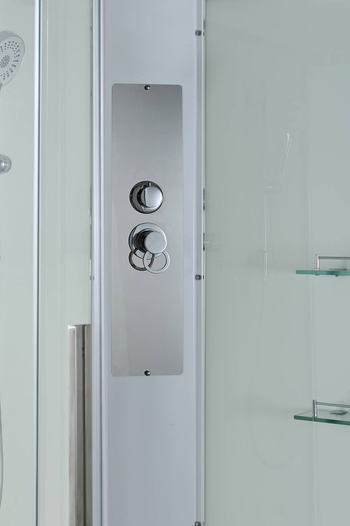 Стильная душевая кабина AvaCan сочетает в себе высокую функциональность, практичность и надежность. При изготовлении применяется безопасное закаленное стекло, надежно фиксируемое алюминиевым профилем. Профиль сделан из алюминия повышенной прочности. Сборка без силикона (увеличивает срок службы, защищает от протечек), внутренняя сборка (облегчает установку и ревизию; позволяет установить в ограниченном пространстве и обойтись без демонтажа других сантехнических приборов), смеситель резьбовой (без хомутов). Съемный экран поддона (позволяет осуществлять подключение и ревизию сифона).Двойные металлические ролики дверей (распределение нагрузки на два ролика, увеличивают срок службы). Душевая штанга(позволяет регулировать по высоте ручную лейку), ручная арома-лейка с витамином С (картридж в комплекте,есть возможность замены или удаления картриджа), полочки(из стекла, с ограничителем), сифон с гидрозатвором.