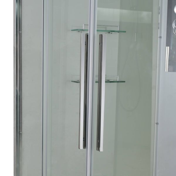 Стильная душевая кабина AvaCan сочетает в себе высокую функциональность, практичность и надежность. При изготовлении применяется безопасное закаленное стекло, надежно фиксируемое алюминиевым профилем. Профиль сделан из алюминия повышенной прочности. Сборка без силикона (увеличивает срок службы, защищает от протечек), внутренняя сборка (облегчает установку и ревизию; позволяет установить в ограниченном пространстве и обойтись без демонтажа других сантехнических приборов), смеситель резьбовой (без хомутов). Съемный экран поддона (позволяет осуществлять подключение и ревизию сифона).Двойные металлические ролики дверей (распределение нагрузки на два ролика, увеличивают срок службы). Душевая штанга(позволяет регулировать по высоте ручную лейку), ручная арома-лейка с витамином С (картридж в комплекте,есть возможность замены или удаления картриджа), полочки(из стекла, с ограничителем), сифон с гидрозатвором.