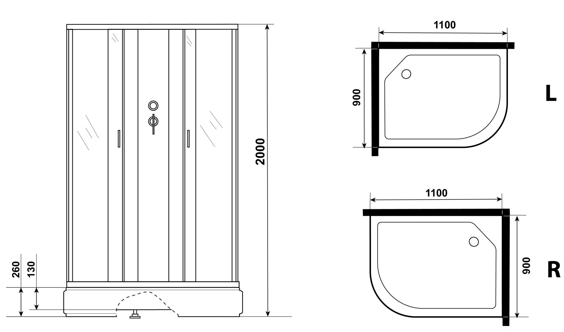 Душевая кабина Niagara NG-33194-14RBKG с гидромассажем 110x90см серебро/матовое